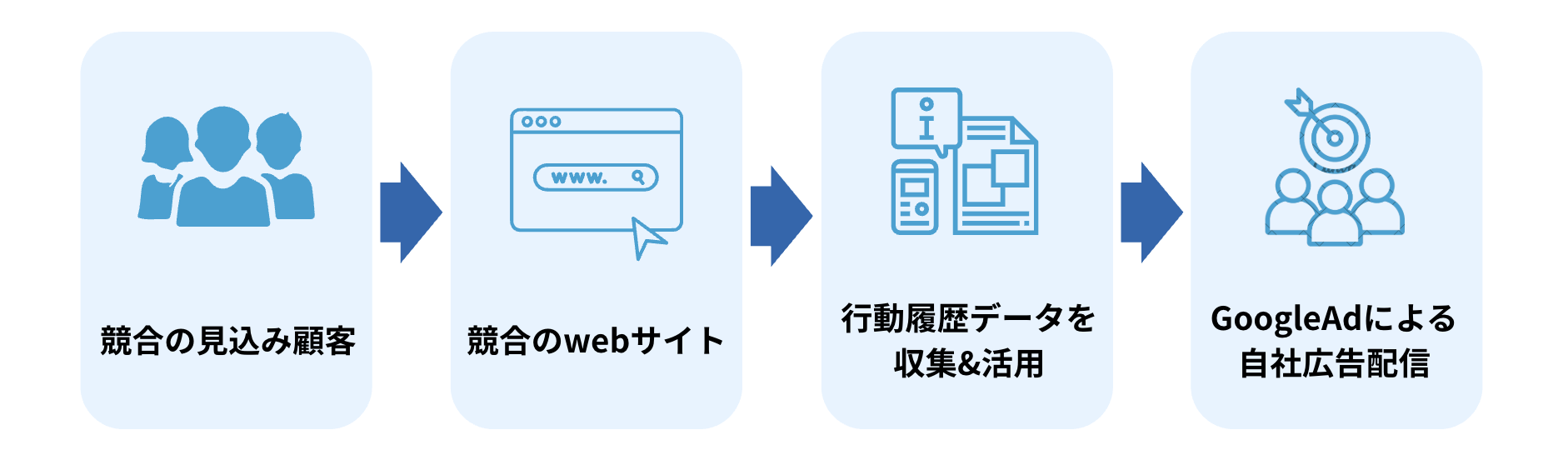 「URL=ユーザーの行動という事実」をもとにした、高精度なターゲティングを可能にします。