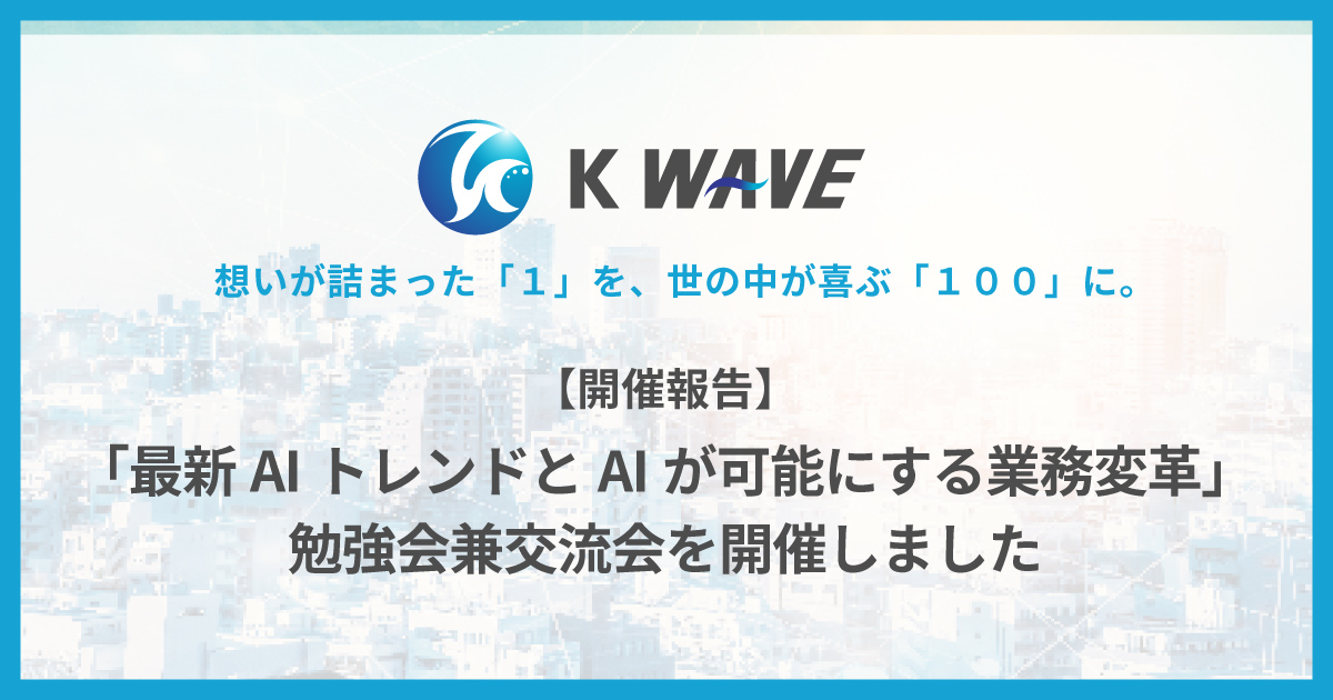 今後もKWAVEでは、AIの実践活用に関するイベントを定期的に開催予定です。今回ご参加いただけなかった皆様も、ぜひ次回以降にご期待ください。