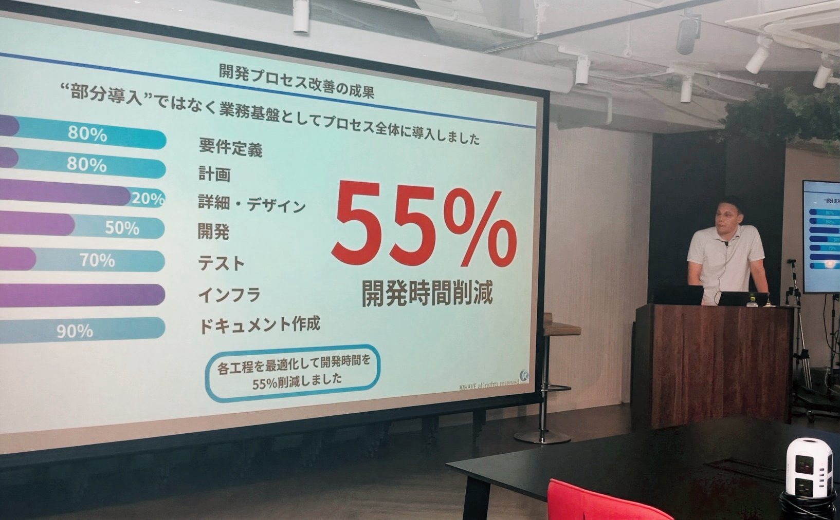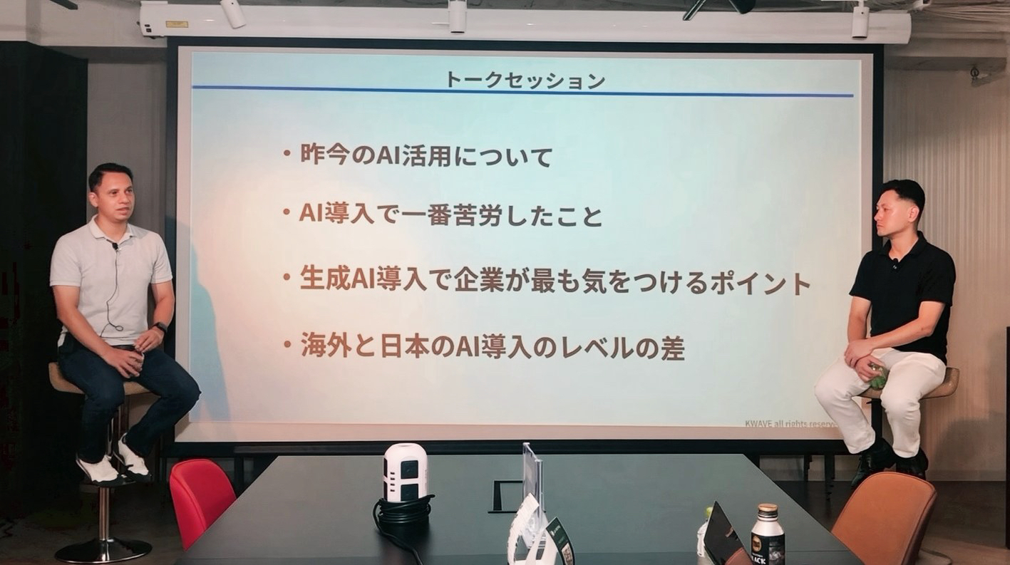 登壇者は、KWAVEのCTOスマン氏でAI活用における最前線で実績を持ち、